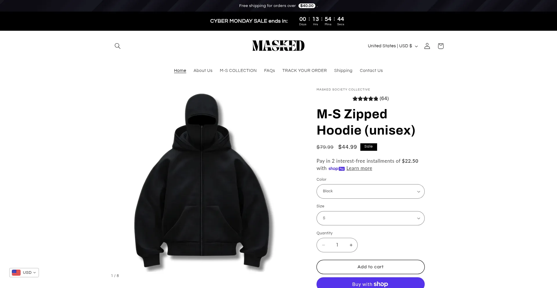Analysis indicates that maskedsocietyofficial.com operates as an e-commerce platform facilitating online transactions for goods or services. The website implements shopping cart functionality, payment processing systems, and product catalog features typical of commercial retail operations.