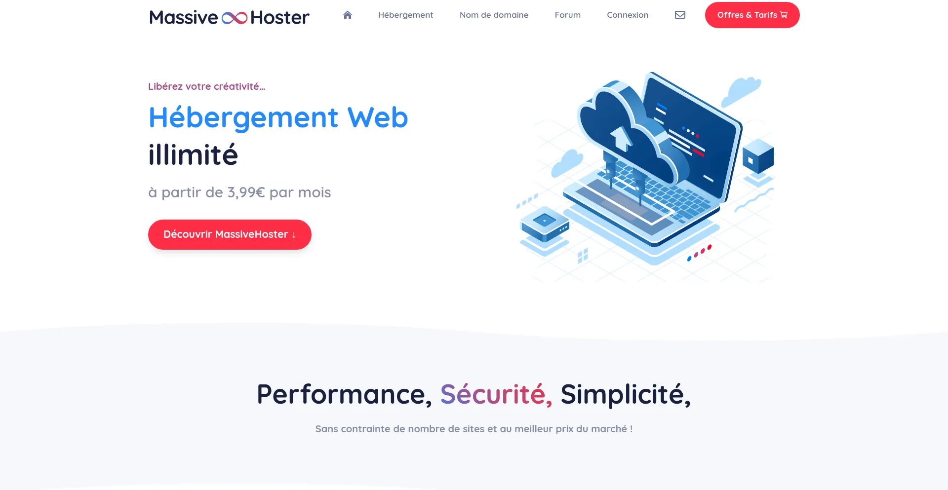 Hébergement Web le moins cher d'Europe : Performant, Sécurisé, Simple d'utilisation et "illimité" àpd seulement 3,99€/mois !