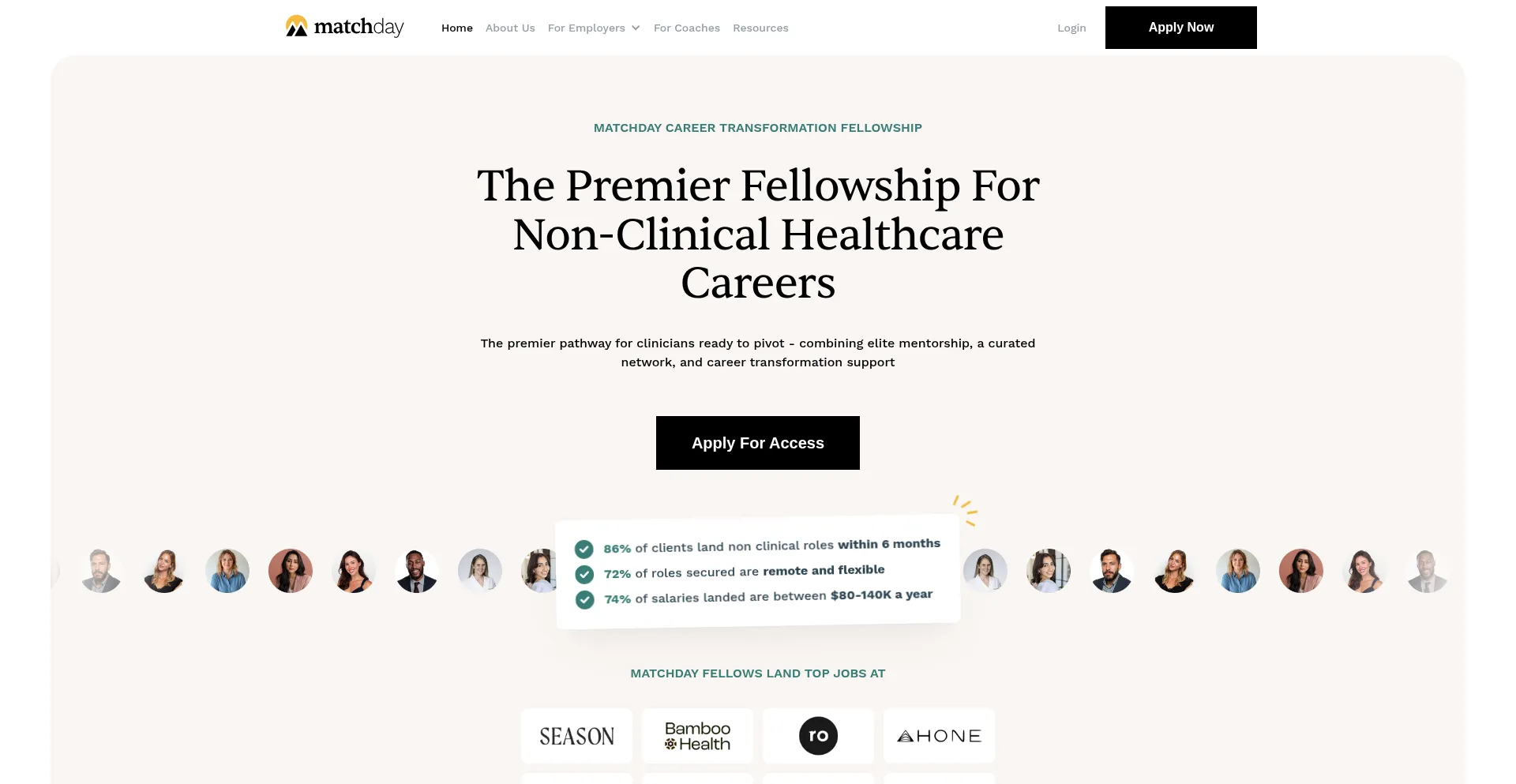 Join the Matchday Health fellowship: Transition from clinical practice to leadership roles in health tech & life sciences. Expert coaching & network access.