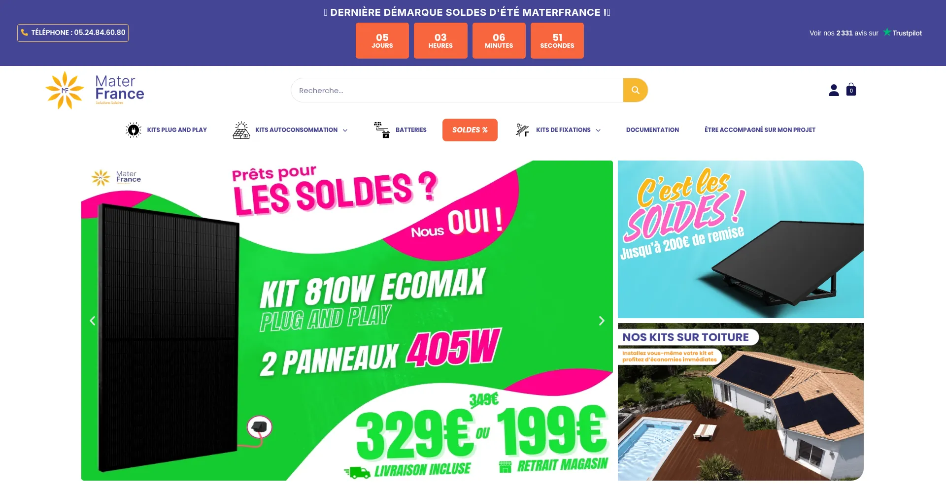 Materfrance, n°1 des kits solaires Plug & Play et autoconsommation. Simples à installer, puissants, conçus pour répondre à tous les besoins d’énergie solaire.