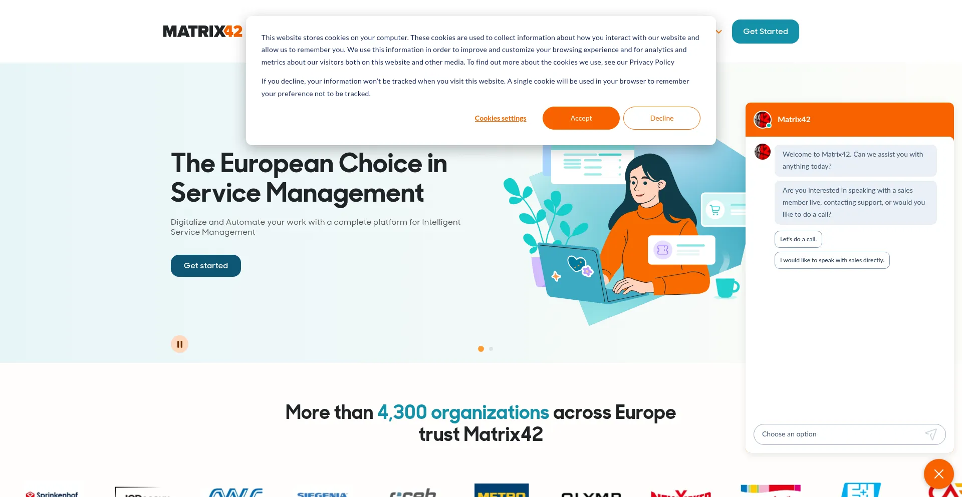 The matrix42.com website uses Google Tag Manager to add and update tracking tags on its website.