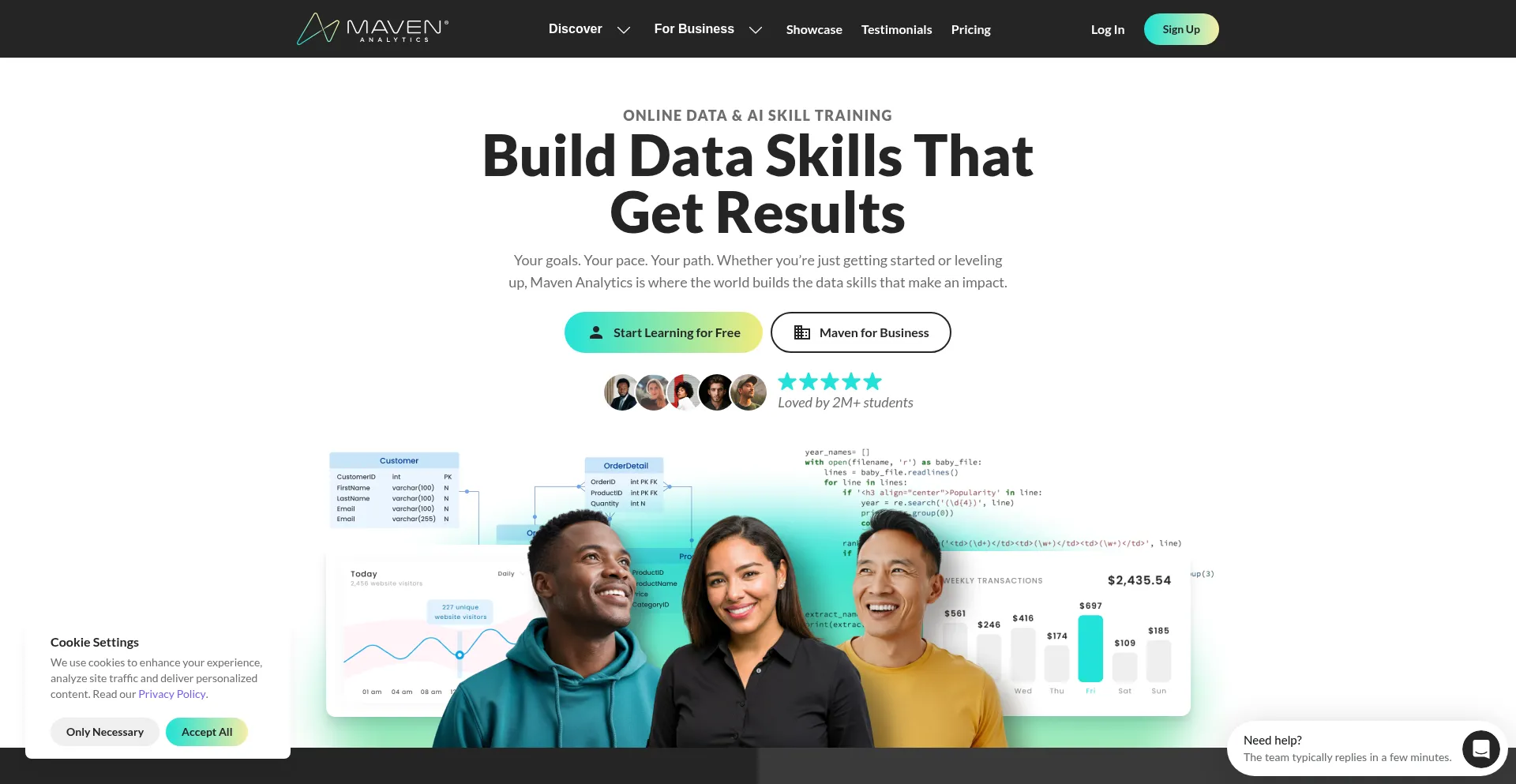 The website implements cookie consent mechanisms in compliance with privacy regulations such as GDPR or CCPA. This demonstrates that mavenanalytics.io adheres to data protection standards and provides users with control over personal data collection practices.