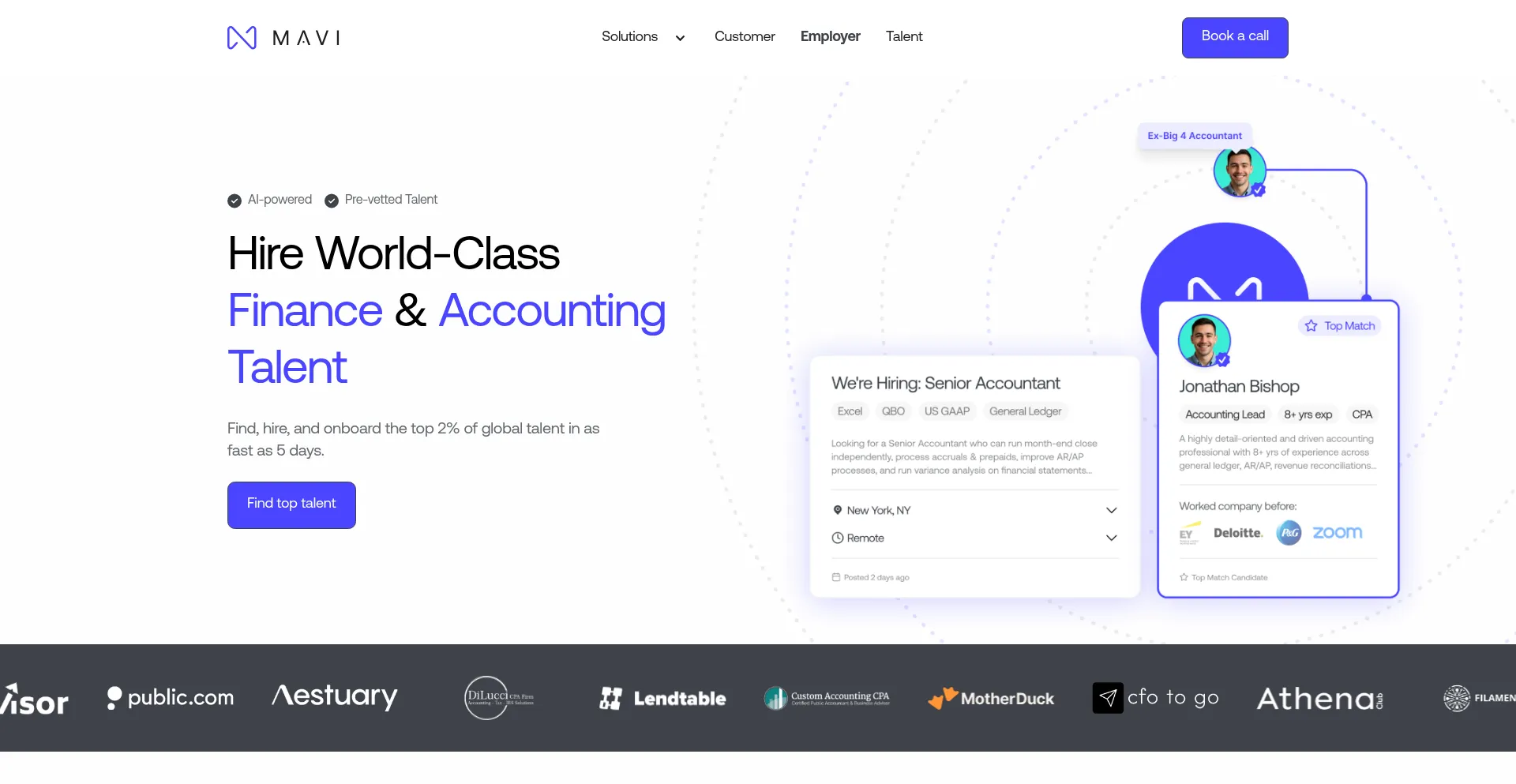 MAVI operates a proprietary, AI-powered platform that matches U.S. companies with top-tier, pre‑vetted global accounting and finance talent. Our platform enables fast hiring �...