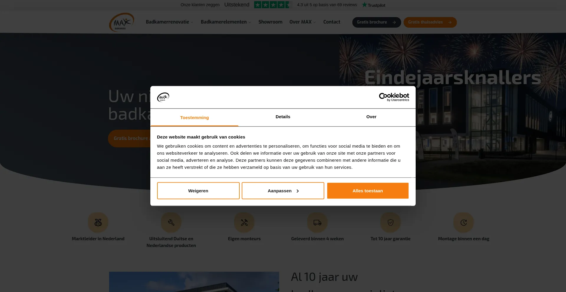 The website implements cookie consent mechanisms in compliance with privacy regulations such as GDPR or CCPA. This demonstrates that maxbadkamers.nl adheres to data protection standards and provides users with control over personal data collection practices.