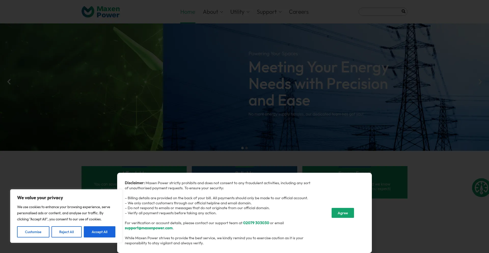The website implements cookie consent mechanisms in compliance with privacy regulations such as GDPR or CCPA. This demonstrates that maxenpower.com adheres to data protection standards and provides users with control over personal data collection practices.