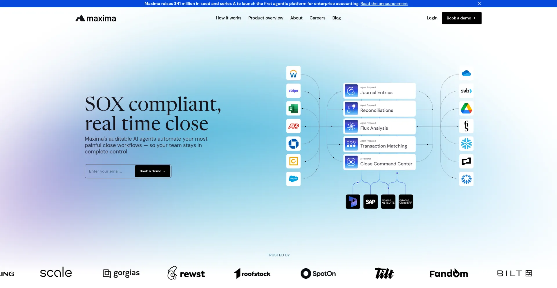 Maxima automates accounting with agentic AI—journals, reconciliations, and flux analysis—delivering a SOX-compliant, real-time close for enterprise finance teams.