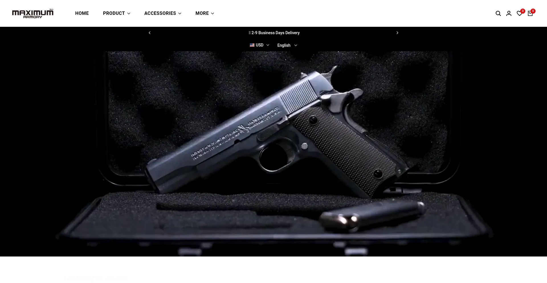 Our analyzer determines that website maximumarmory.com is using Shopify CMS. Shopify is a popular e-commerce platform, powering around 4.4% of websites globally.