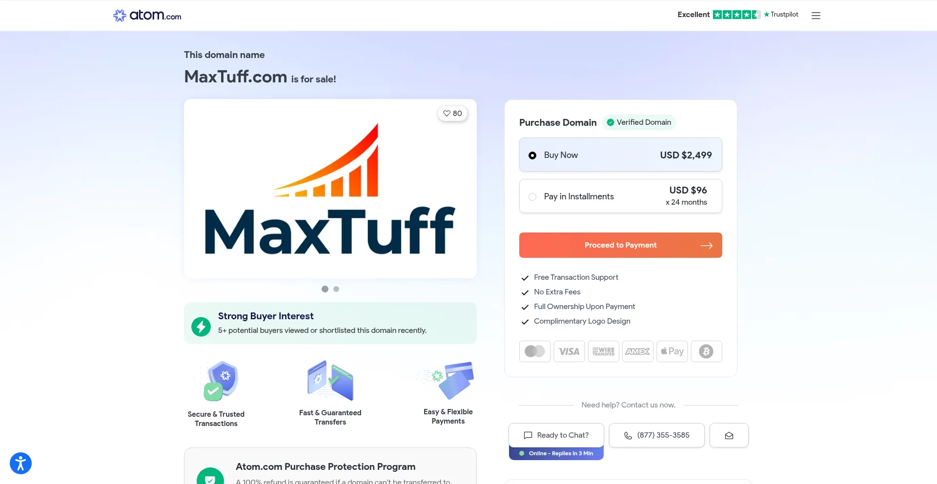 MaxTuff.com is for sale at Atom. Buy this premium domain for $2,499USD and get a free logo. MaxTuff.com has strong buyer interest, so act now!