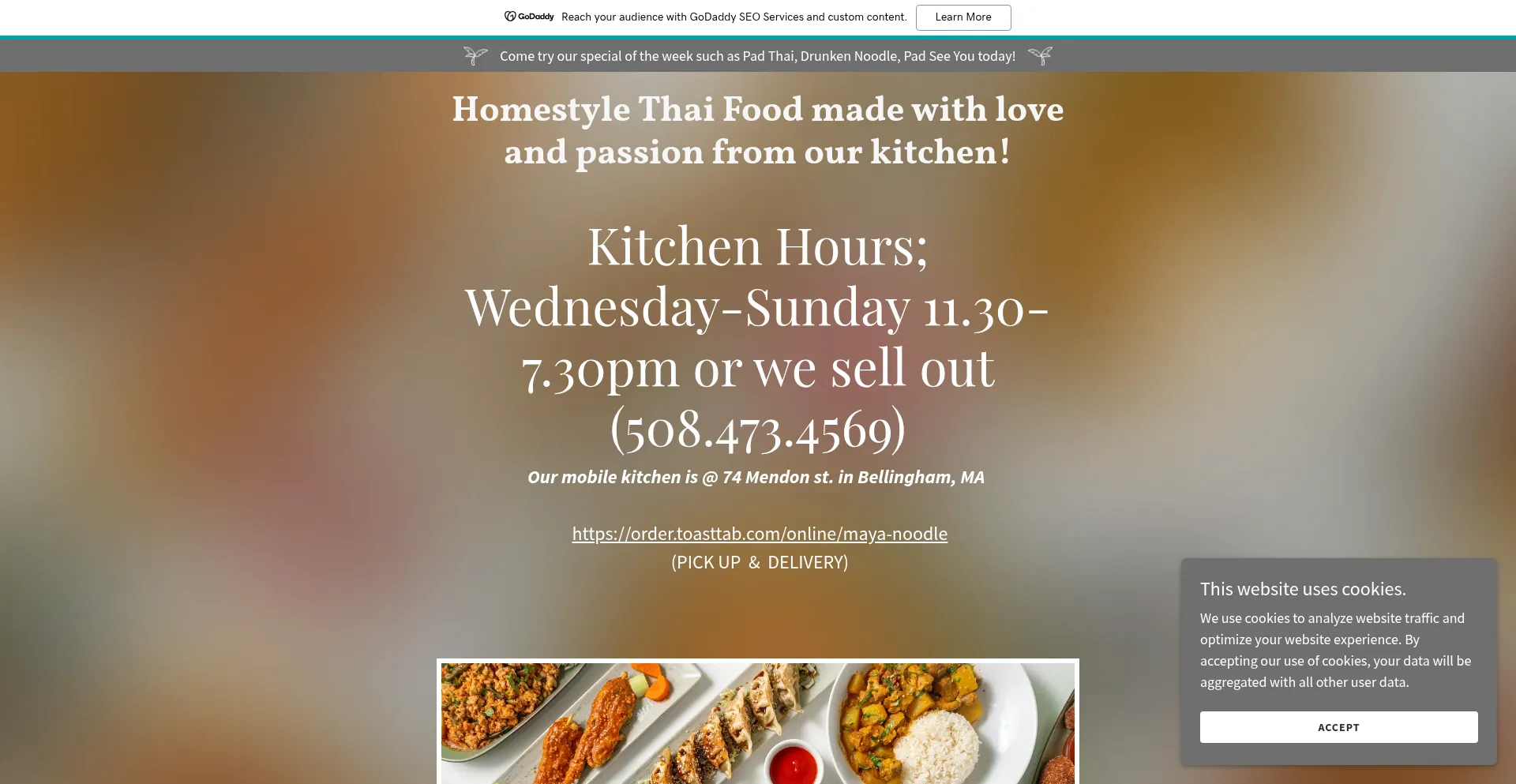 s.zkcdn.net mayanoodle.com img1.wsimg.com www.facebook.com cdn.reamaze.com csp.secureserver.net ms.godaddy.com bayleafthai.com www.instagram.com www.godaddy.com +1 more