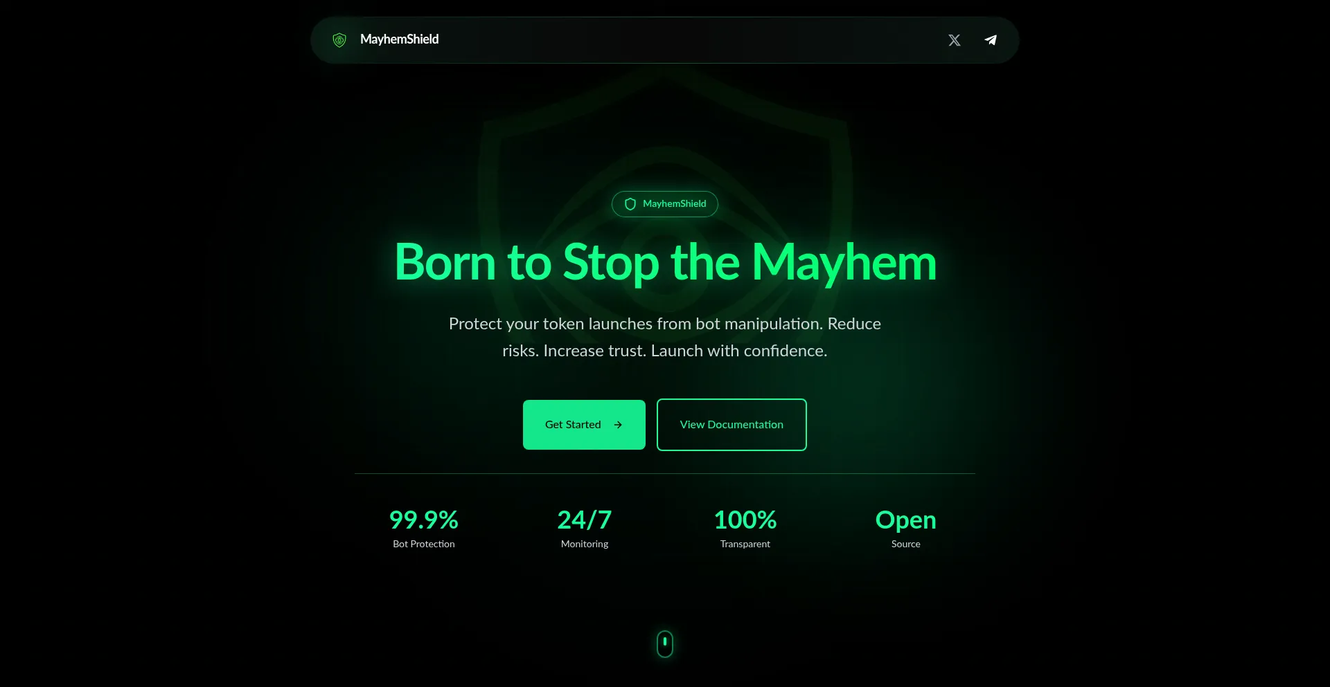 MayhemShield provides advanced token protection with AI-driven threat detection, neon 3D visualizations, and guardian monitoring for safer crypto launches.