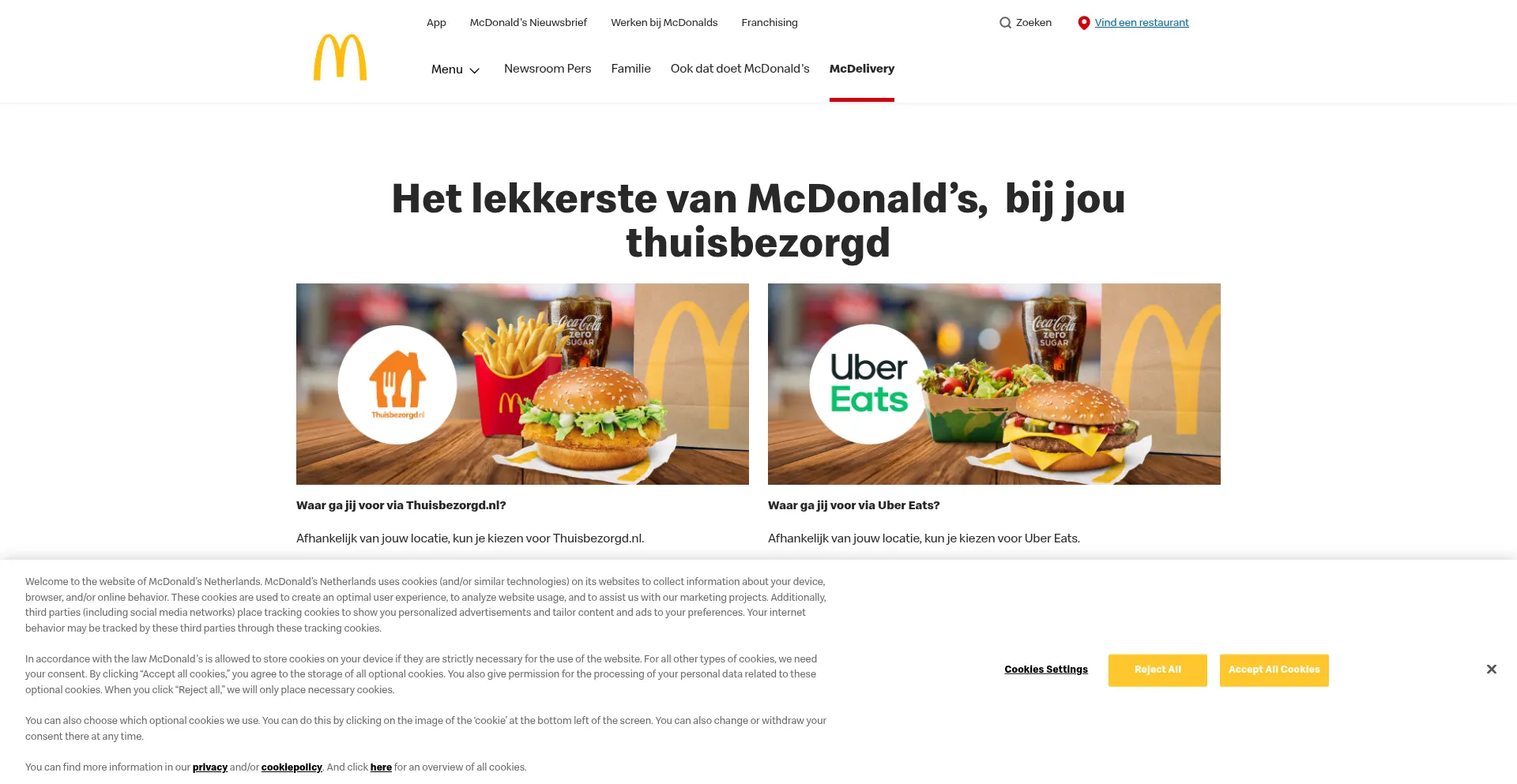 The website implements cookie consent mechanisms in compliance with privacy regulations such as GDPR or CCPA. This demonstrates that mcdelivery.nl adheres to data protection standards and provides users with control over personal data collection practices.