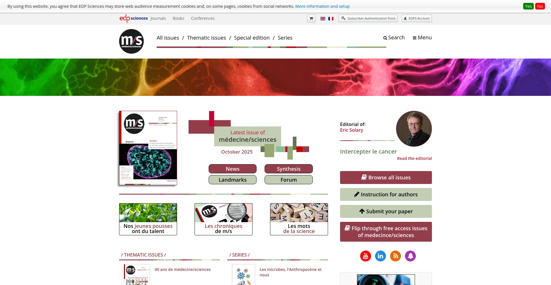 médecine/sciences (M/S), revue internationale dans le domaine de la recherche biologique, médicale et en santé