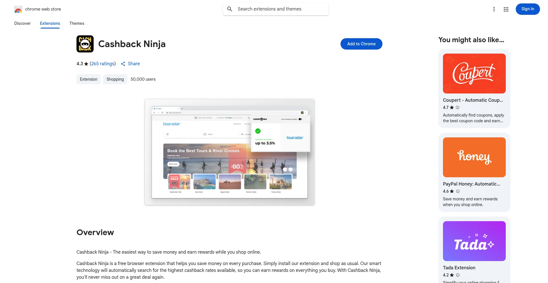 Cashback Ninja - The easiest way to save money and earn rewards while you shop online.