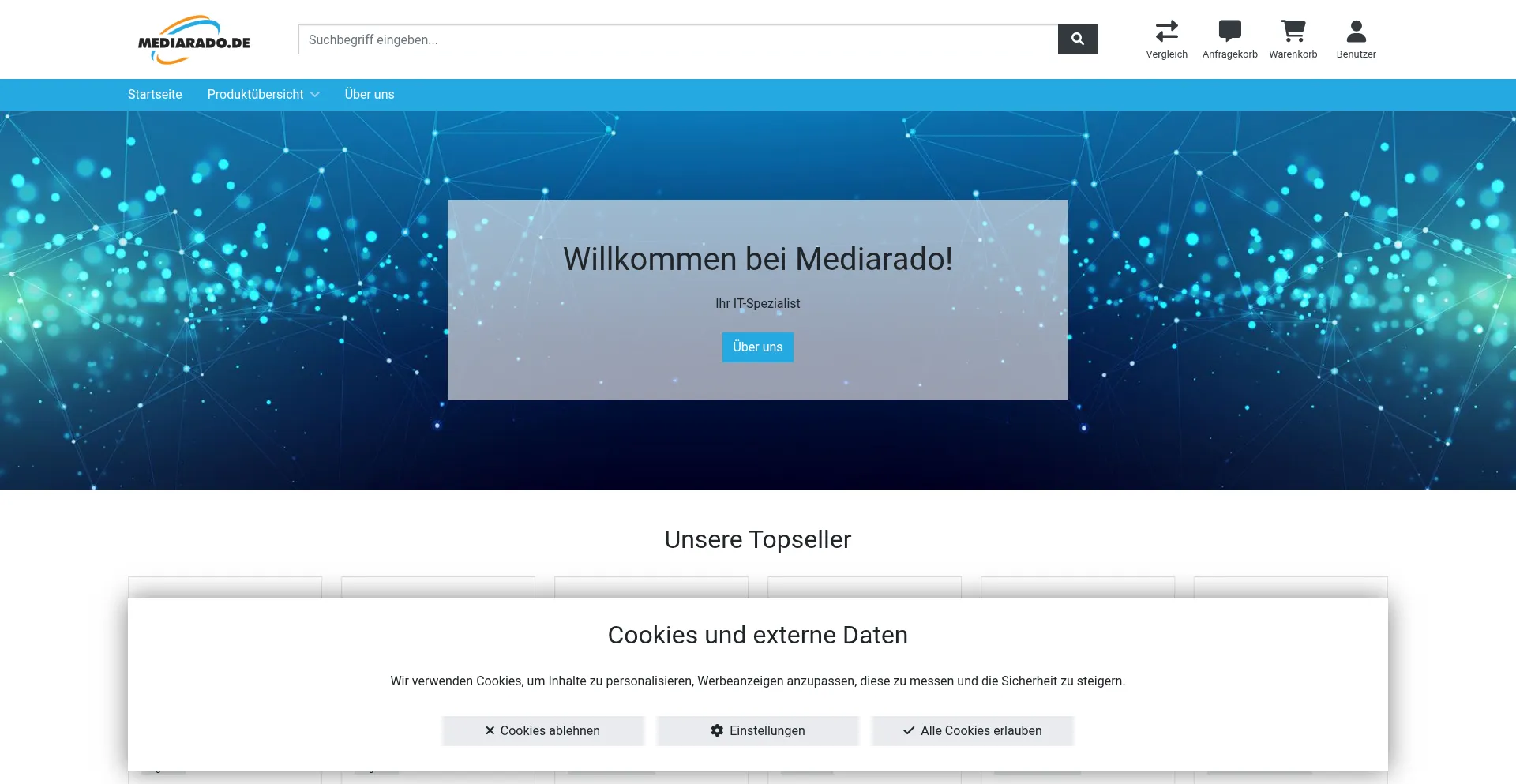 Analysis indicates that mediarado.de operates as an e-commerce platform facilitating online transactions for goods or services. The website implements shopping cart functionality, payment processing systems, and product catalog features typical of commercial retail operations.