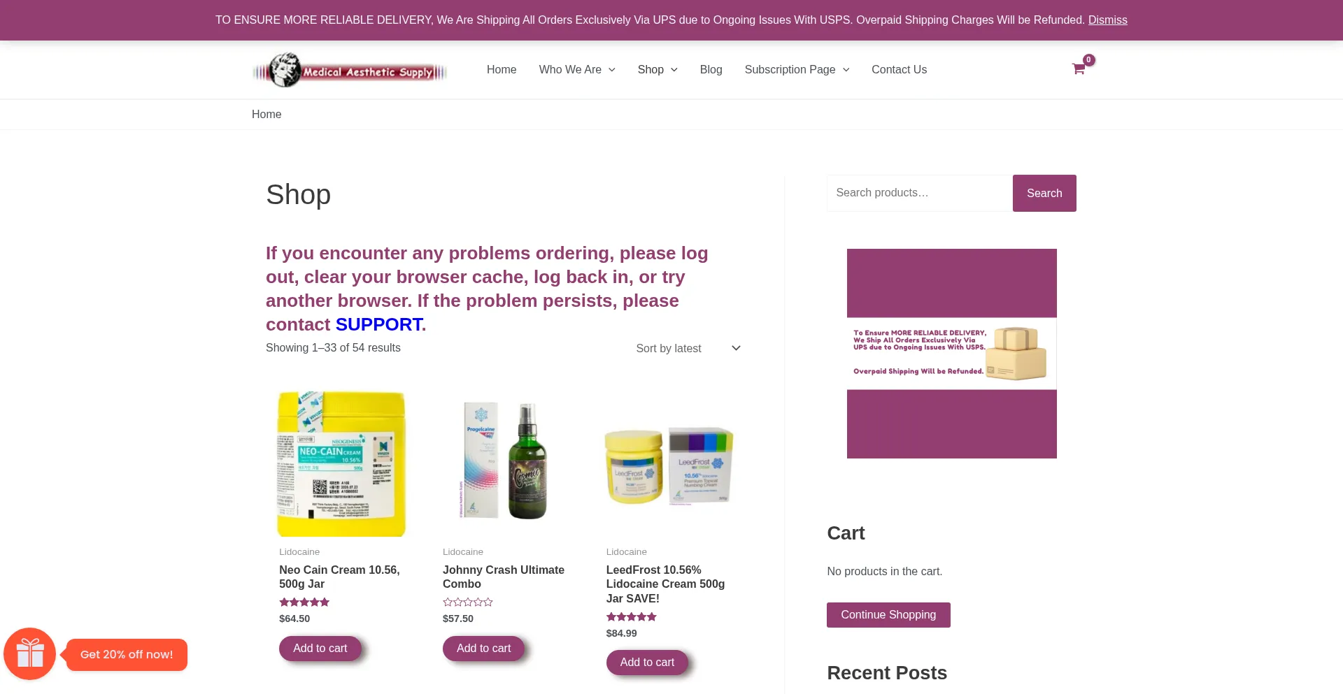 Our shop page contains medical aesthetic supplies on clearance for licensed professionals and OTC 10 numbing cream, lidocaine 9 gel, lidocain