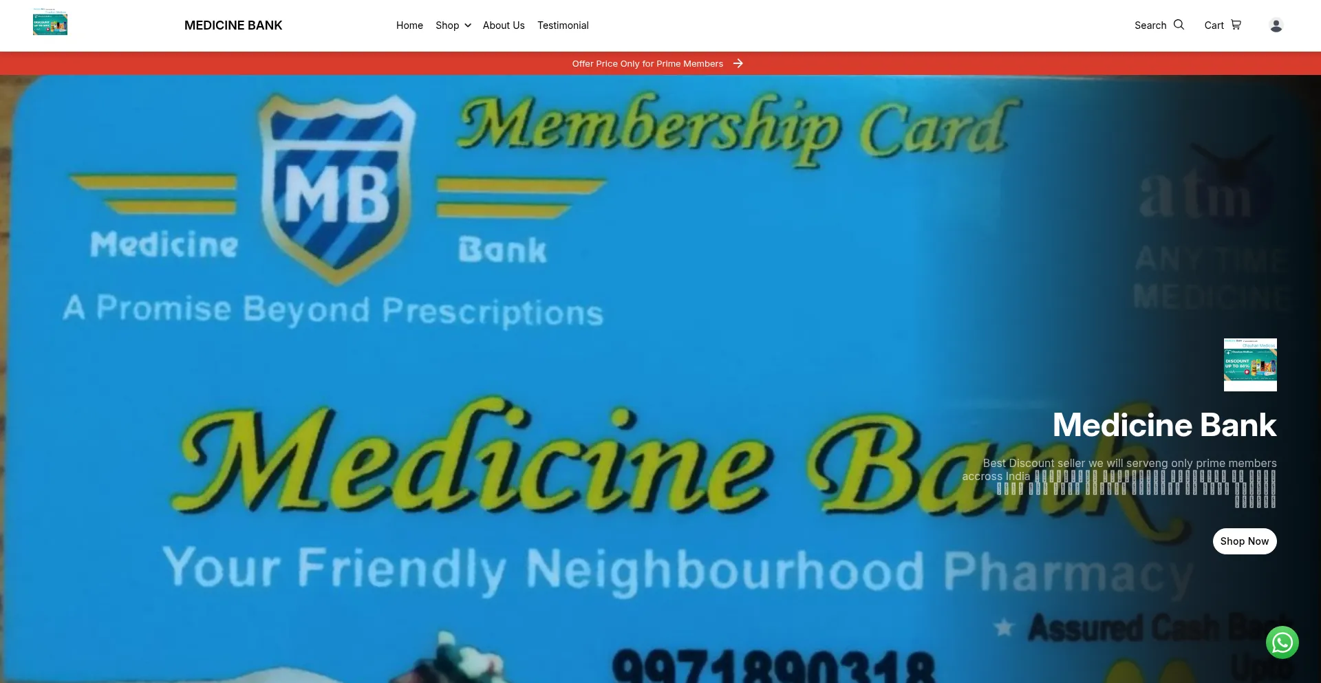 Analysis indicates that medicinebank.co.in operates as an e-commerce platform facilitating online transactions for goods or services. The website implements shopping cart functionality, payment processing systems, and product catalog features typical of commercial retail operations.