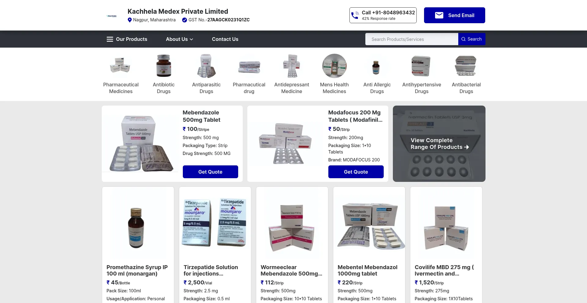 Kachhela Medex Private Limited - Exporter of Pharmaceutical Medicines, Antibiotic Drugs & Antiparasitic Drugs from Nagpur, Maharashtra, India