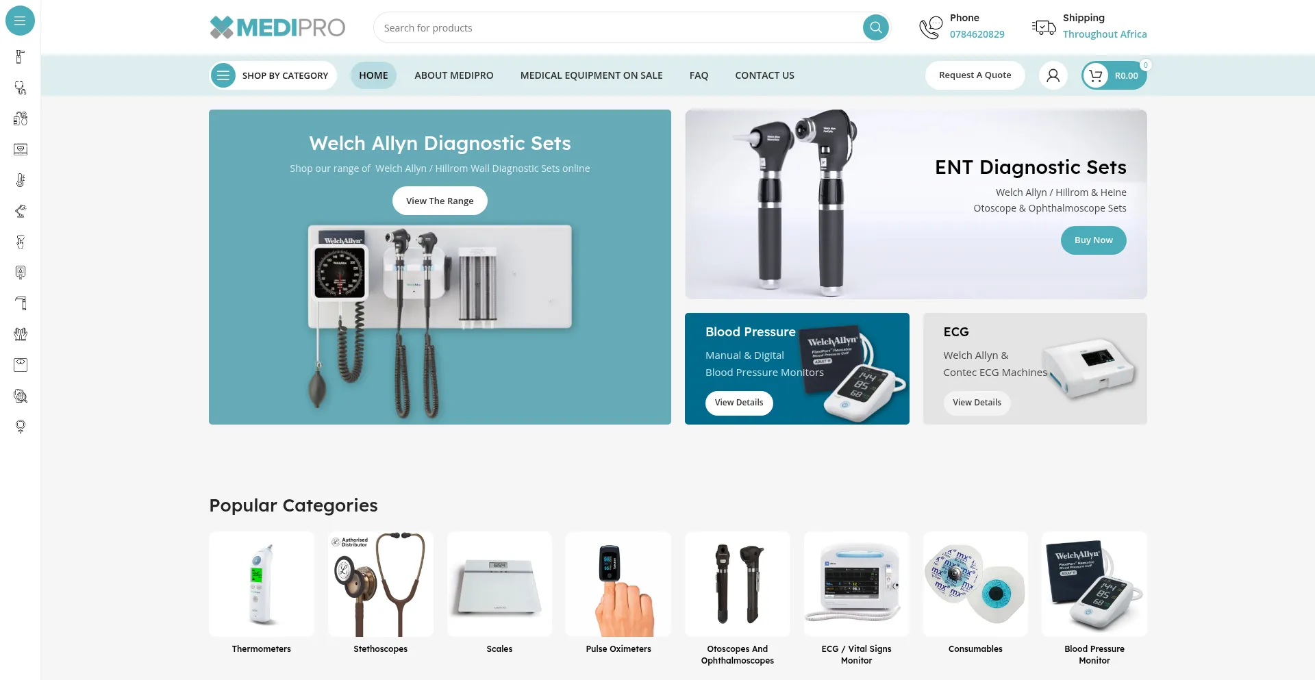 Analysis indicates that medipro.co.za operates as an e-commerce platform facilitating online transactions for goods or services. The website implements shopping cart functionality, payment processing systems, and product catalog features typical of commercial retail operations.