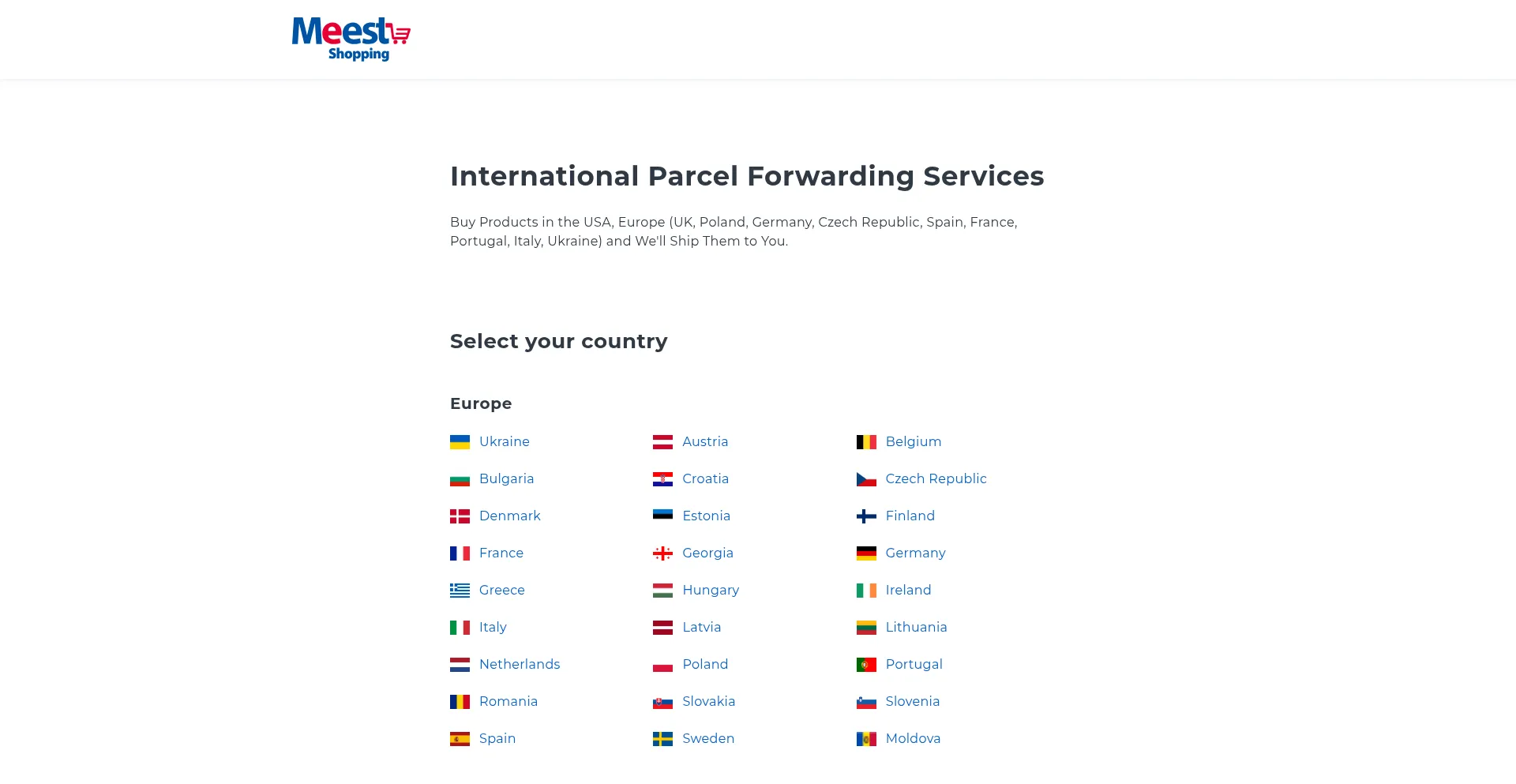 Choose your country - Meest Shopping - Delivery of purchases from online stores
