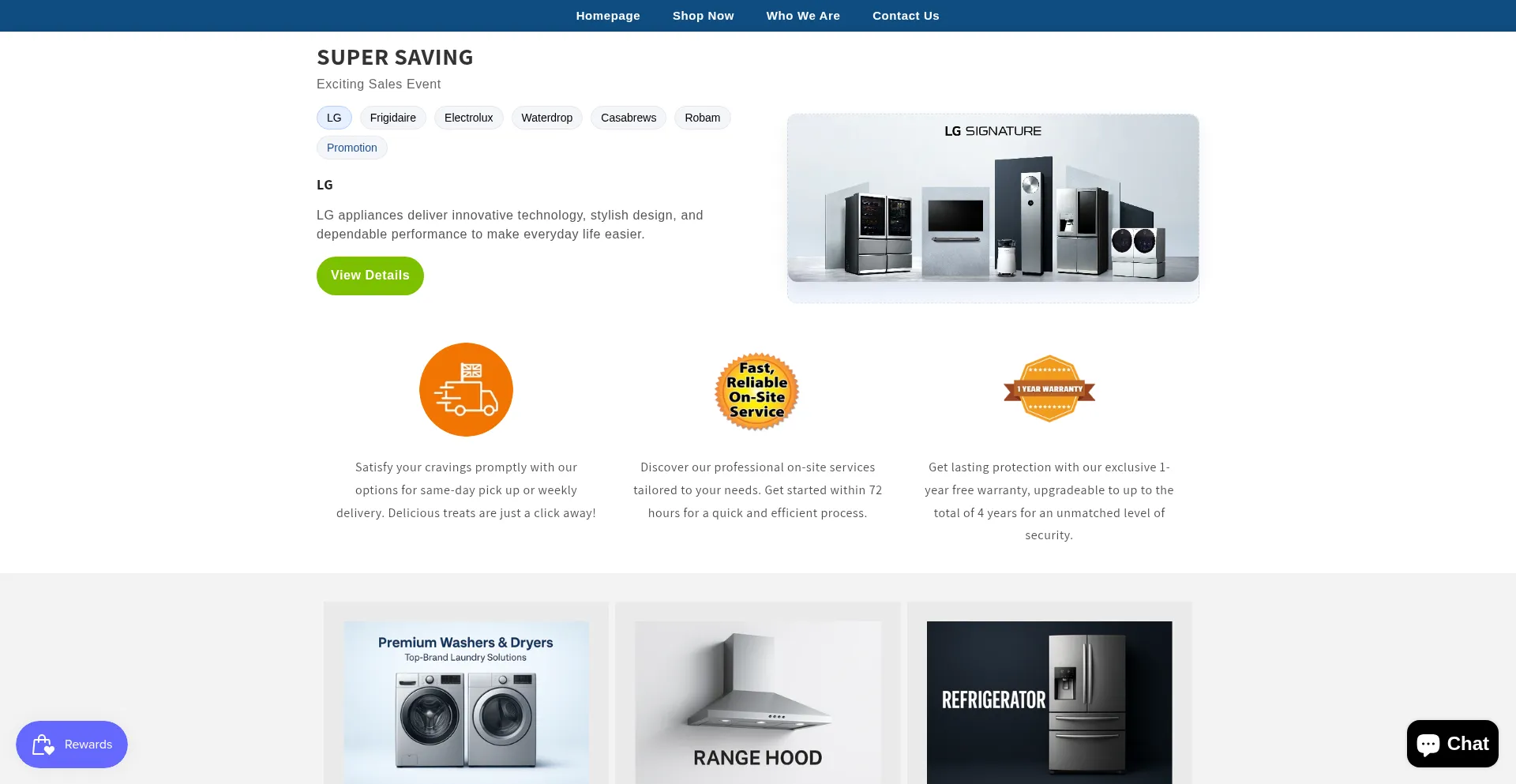 The megadiscountappliance.com website utilizes free e-commerce platform solutions, which may indicate cost-conscious operations but could also suggest limitations in security features, customer support, or advanced functionality compared to enterprise-grade solutions.
