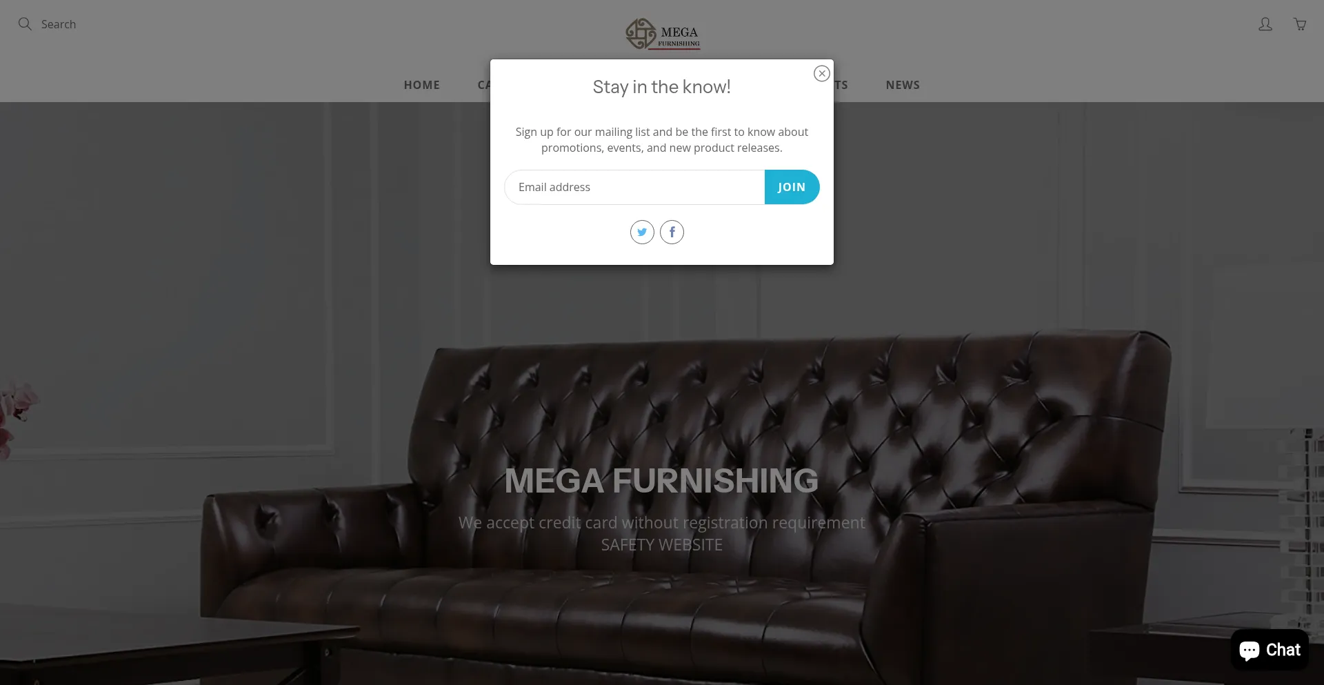 Analysis reveals that megafurnishing.com displays social media icons or links that do not connect to legitimate social media profiles. This deceptive practice is commonly employed to create false legitimacy and represents a significant indicator of fraudulent intent requiring immediate caution.