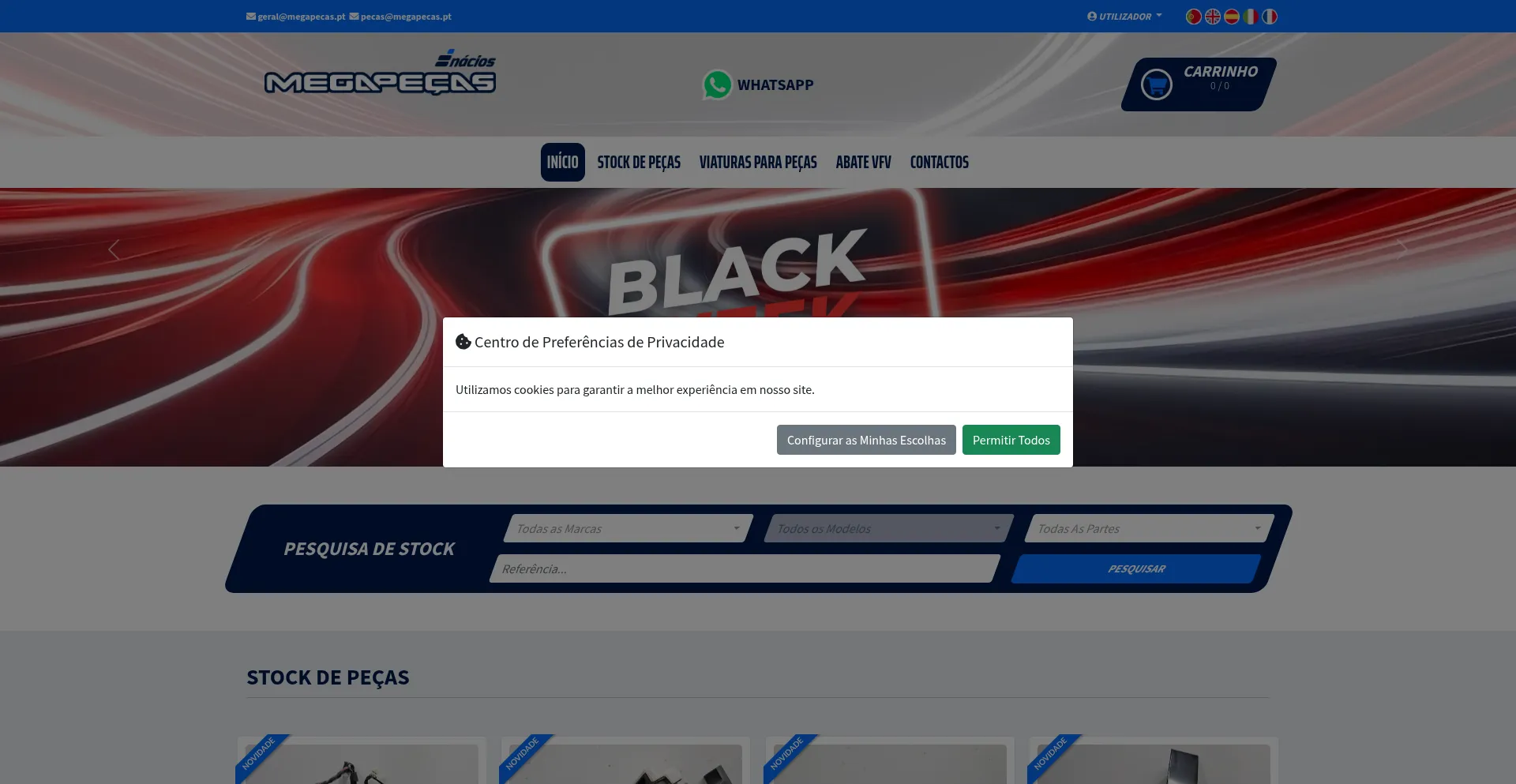 megapecas.pt uses Bootstrap, a widely-adopted open-source framework for responsive web development. Bootstrap enables efficient creation of mobile-friendly interfaces through standardized components and styling.