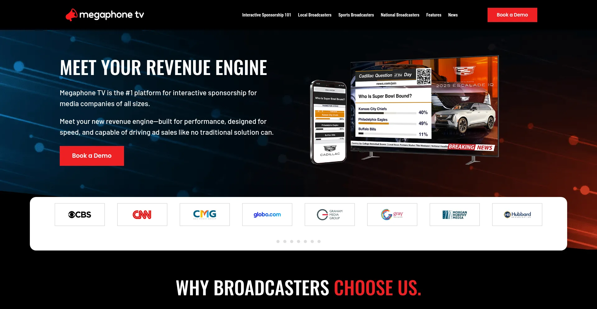 Megaphone TV is the #1 platform for interactive sponsorship for broadcasters of all sizes, helping you sell bigger ad packages and drive more ad revenue.