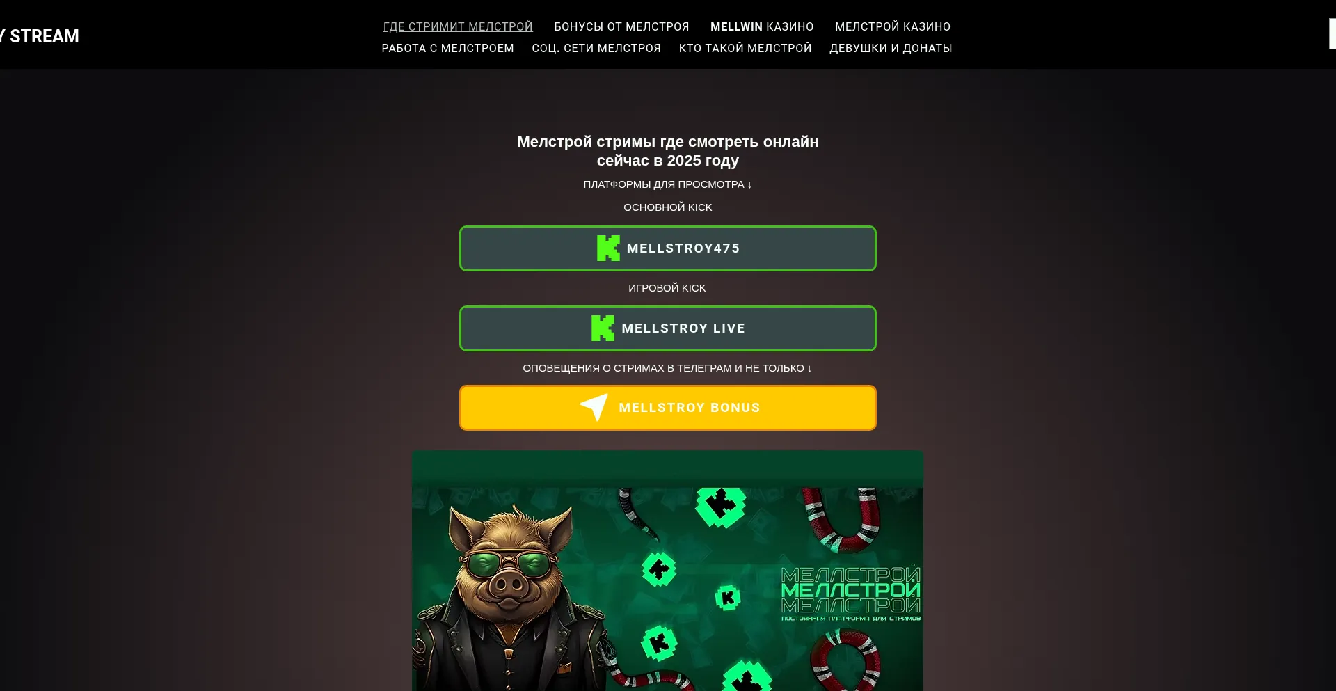 Смотрите где сейчас проводит стримы Mellstroy, онлайн на Kick (Кик), его трансляции с Моргенштерном и де�...