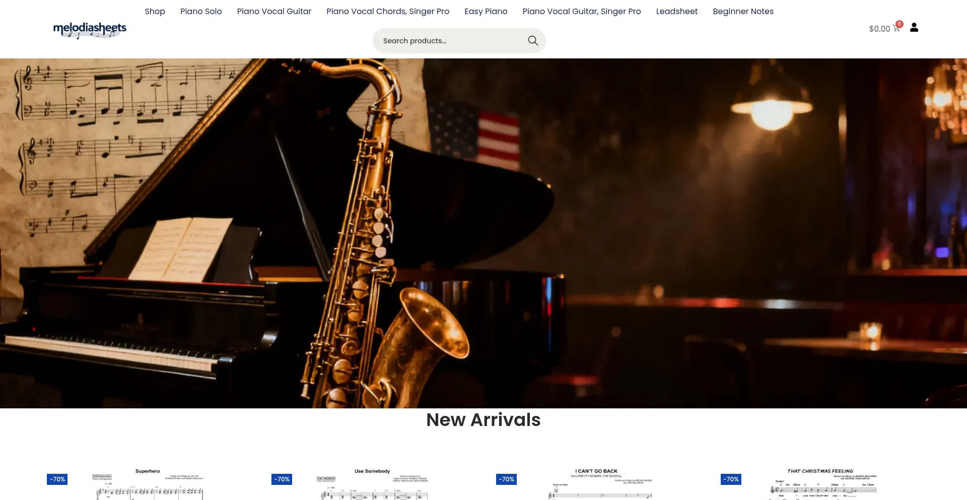Analysis indicates that melodiasheets.com operates as an e-commerce platform facilitating online transactions for goods or services. The website implements shopping cart functionality, payment processing systems, and product catalog features typical of commercial retail operations.