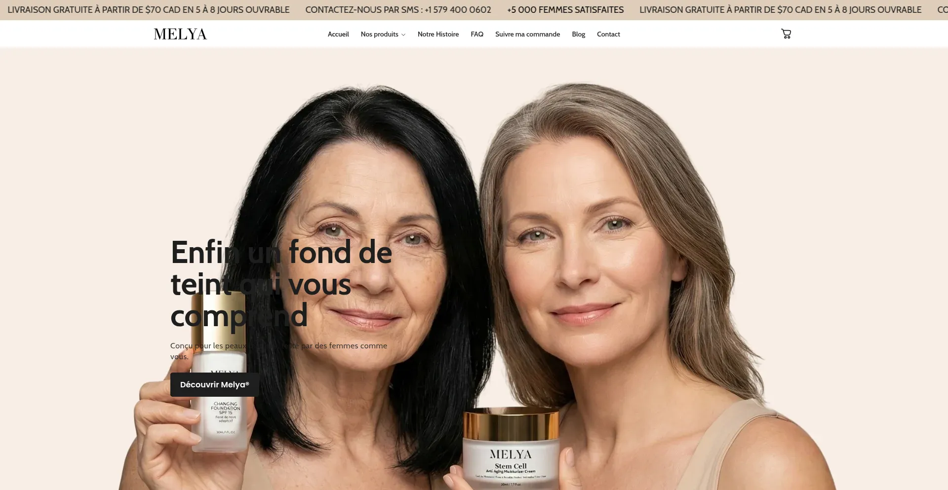 Découvrez le fond de teint Melya et nos soins pensés pour les femmes de 40+ : hydratation, éclat et douceur pour une peau sublimée, à tout âge