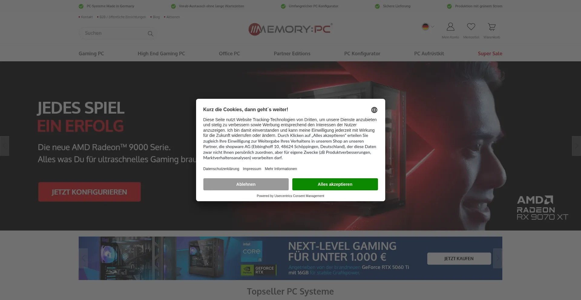 Analysis indicates that memorypc.de operates as an e-commerce platform facilitating online transactions for goods or services. The website implements shopping cart functionality, payment processing systems, and product catalog features typical of commercial retail operations.