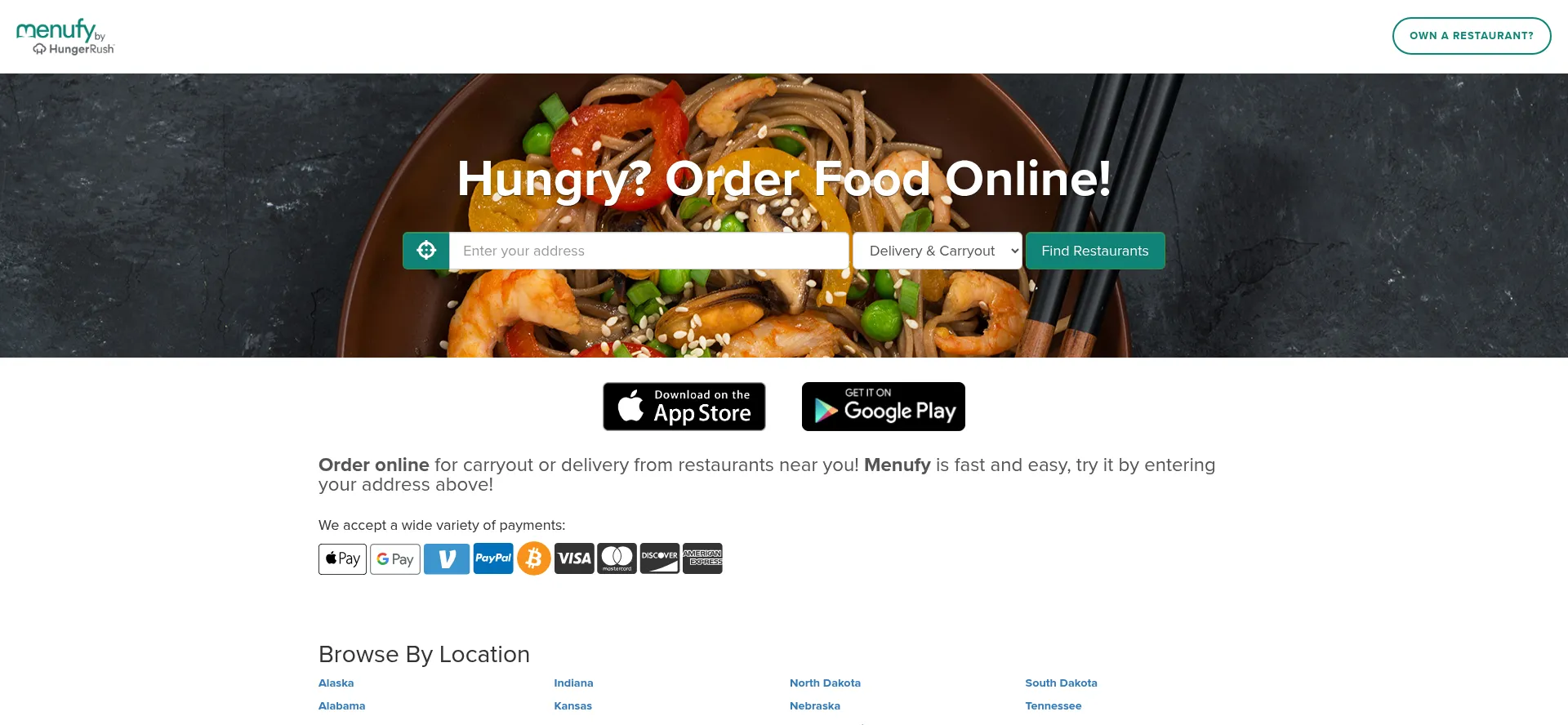 Order online for carryout or delivery from restaurants near you and conveniently pay by Credit Card, Apple Pay, Google Pay, PayPal, Venmo, Bitcoin, and more. Menufy is fast and ...