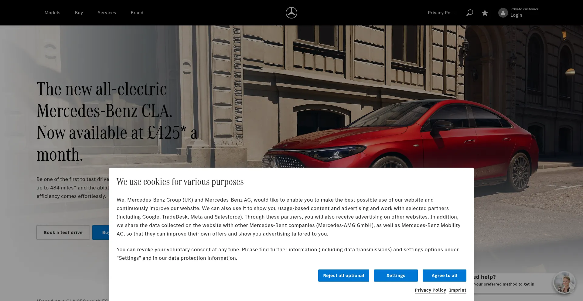 The website implements cookie consent mechanisms in compliance with privacy regulations such as GDPR or CCPA. This demonstrates that mercedes-benz.co.uk adheres to data protection standards and provides users with control over personal data collection practices.