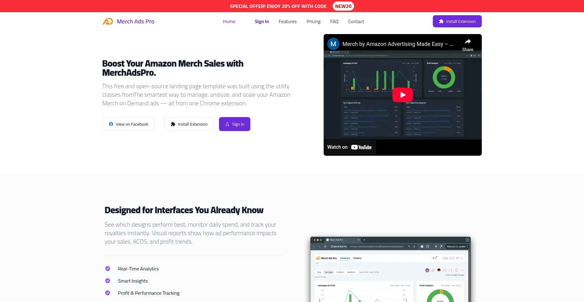 MerchAdsPro – The ultimate Chrome extension for Amazon Merch ad management. Easily create, track, and optimize ad campaigns with real-time sales vs. ad spend insights. Maximiz...
