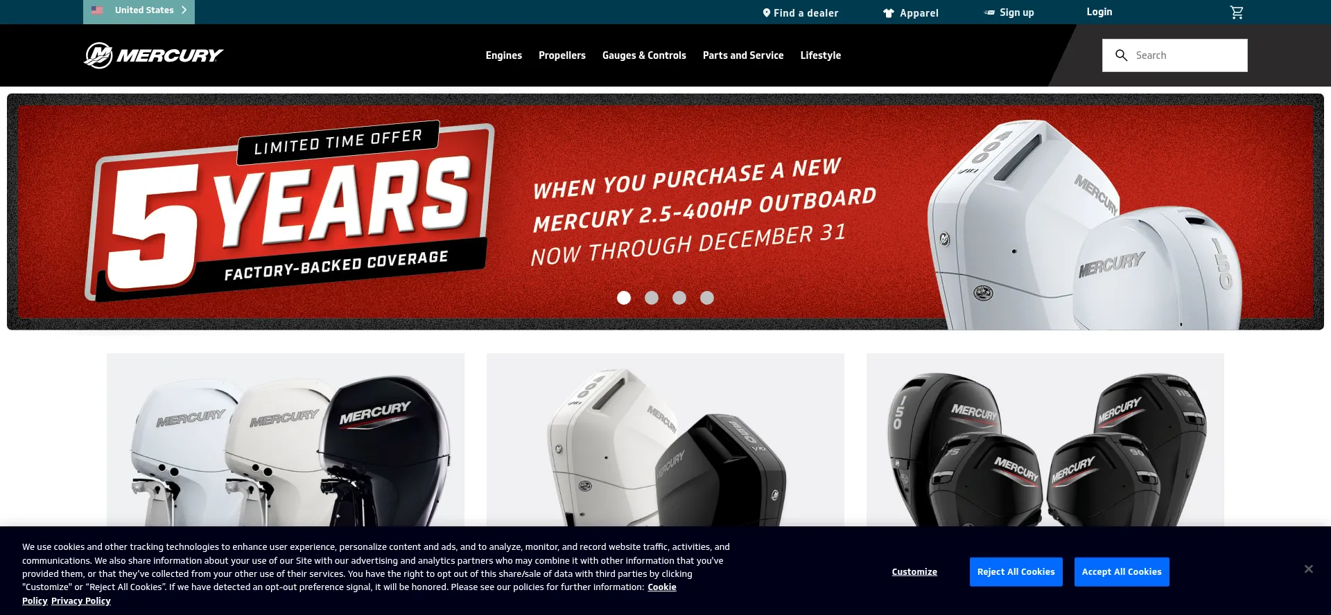 The website implements cookie consent mechanisms in compliance with privacy regulations such as GDPR or CCPA. This demonstrates that mercurymarine.com adheres to data protection standards and provides users with control over personal data collection practices.