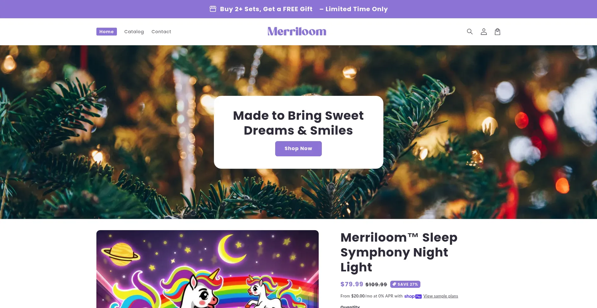 The merriloom.com website utilizes free e-commerce platform solutions, which may indicate cost-conscious operations but could also suggest limitations in security features, customer support, or advanced functionality compared to enterprise-grade solutions.
