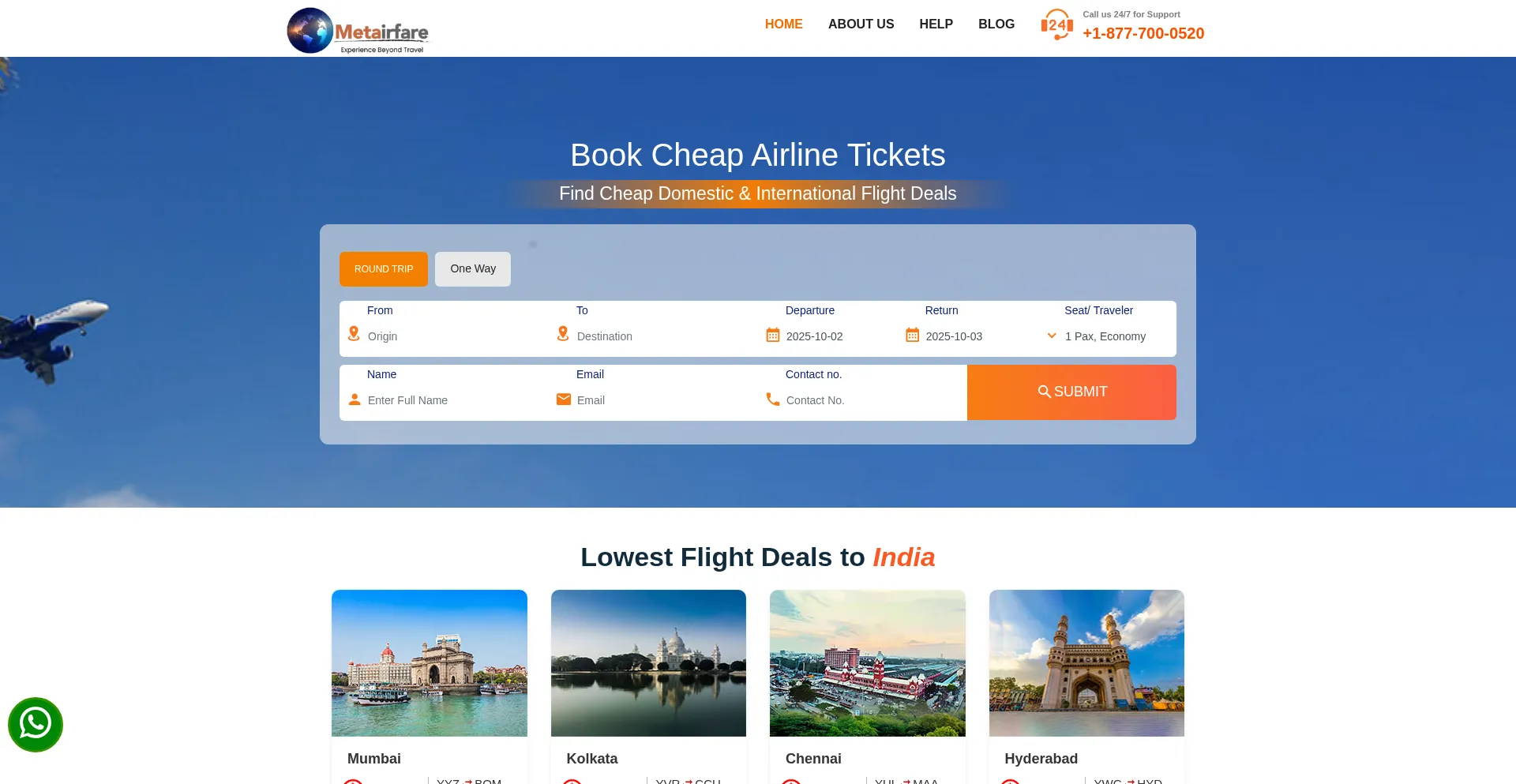 The metairfare.com website implements data collection forms requesting personal information including names, email addresses, phone numbers, or other sensitive details. Users should verify the legitimacy of it and review privacy policies before submitting personal data.