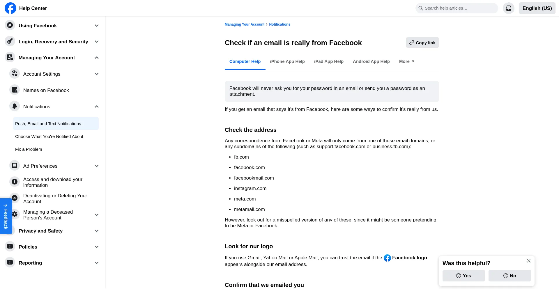 Check if an email is really from Facebook | Facebook Help Center