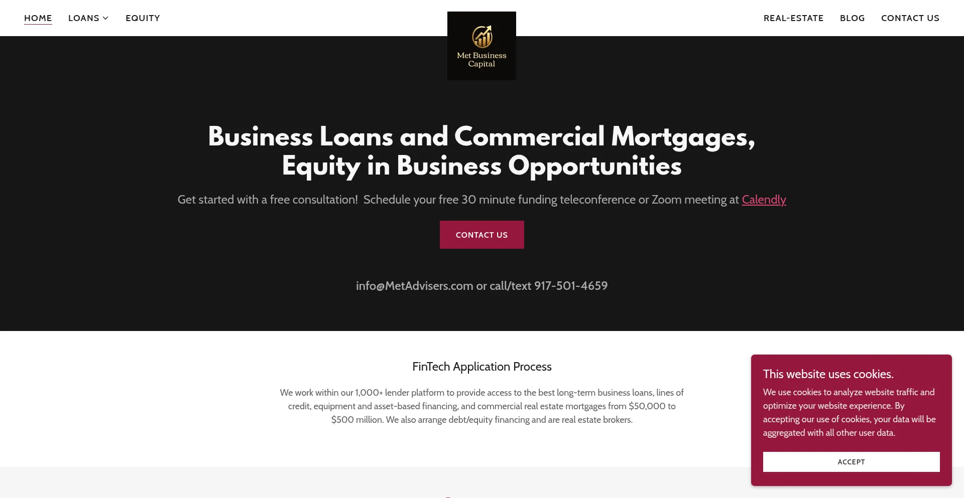The website implements cookie consent mechanisms in compliance with privacy regulations such as GDPR or CCPA. This demonstrates that metbusinesscapital.com adheres to data protection standards and provides users with control over personal data collection practices.