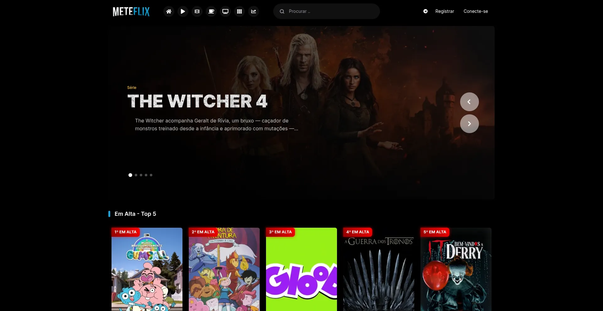 Meteflix PRO - Assista a filmes, séries e canais de TV ao vivo online. Conteúdo completo em HD, grátis e sem precisar baixar. Veja lançamentos, clássicos e programação ao...