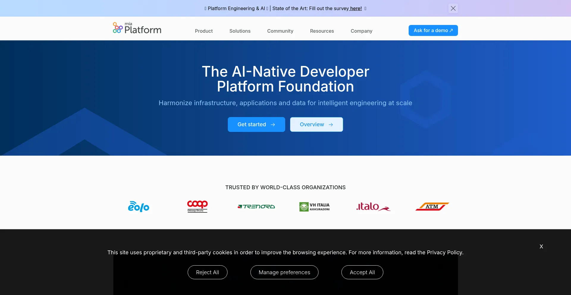 The website implements cookie consent mechanisms in compliance with privacy regulations such as GDPR or CCPA. This demonstrates that mia-platform.eu adheres to data protection standards and provides users with control over personal data collection practices.