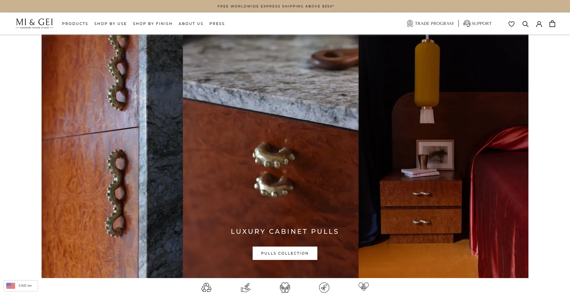 Mi & Gei offers high-end brass cabinet hardware and luxury door hardware. Discover designer craftsmanship from one of the leading luxury hardware brands.