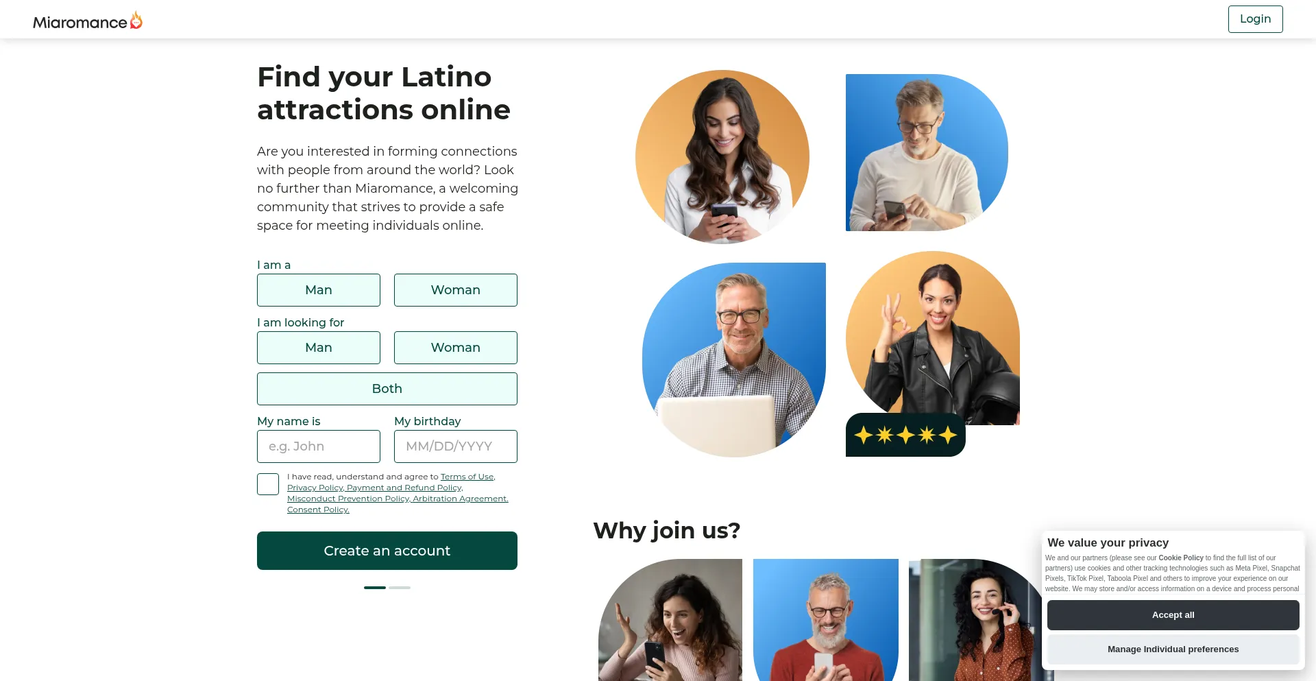 The miaromance.com website implements data collection forms requesting personal information including names, email addresses, phone numbers, or other sensitive details. Users should verify the legitimacy of it and review privacy policies before submitting personal data.