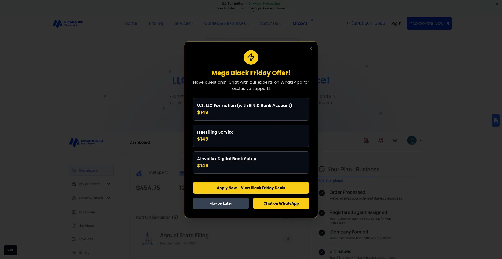 🚀 Start your U.S. company hassle-free! Register your LLC, get an EIN, and open a business bank account—all online for just $179 + state fees. No SSN required!