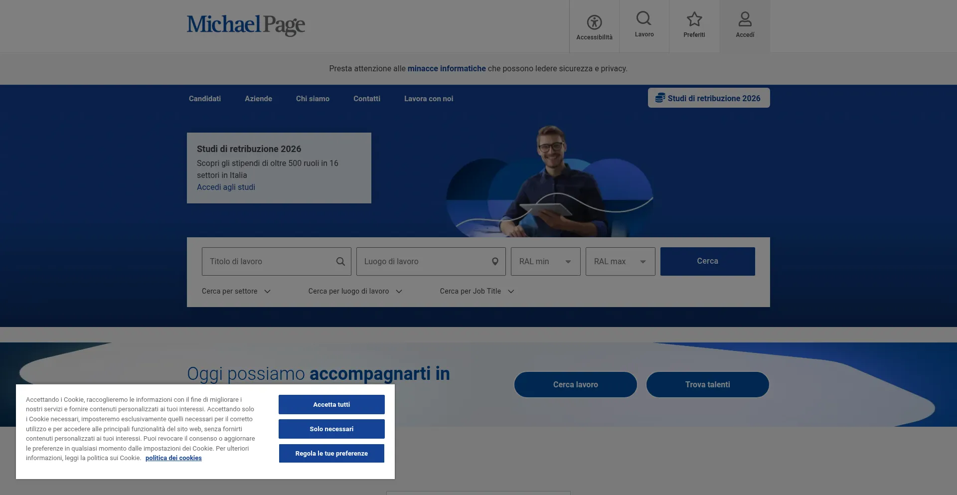 The website implements cookie consent mechanisms in compliance with privacy regulations such as GDPR or CCPA. This demonstrates that michaelpage.it adheres to data protection standards and provides users with control over personal data collection practices.
