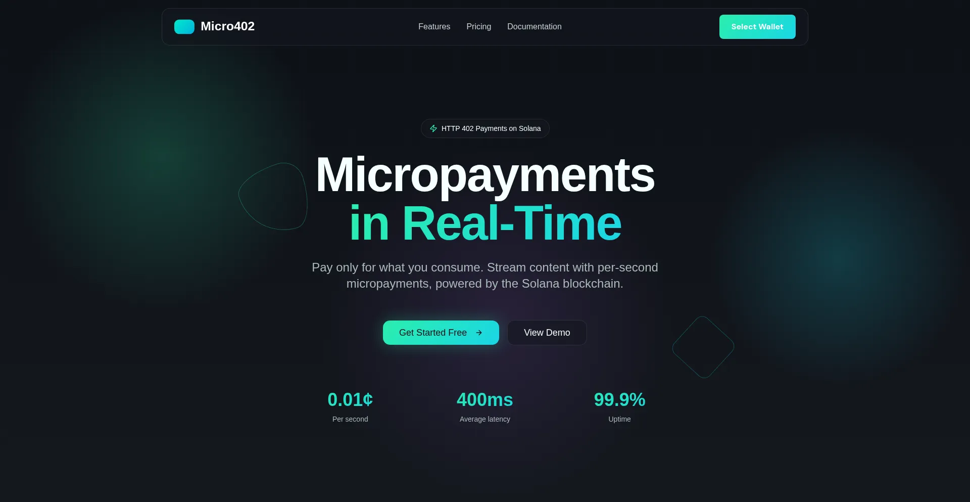 HTTP 402 payment platform on Solana. Stream content with per-second micropayments. Revolutionary pay-per-use.