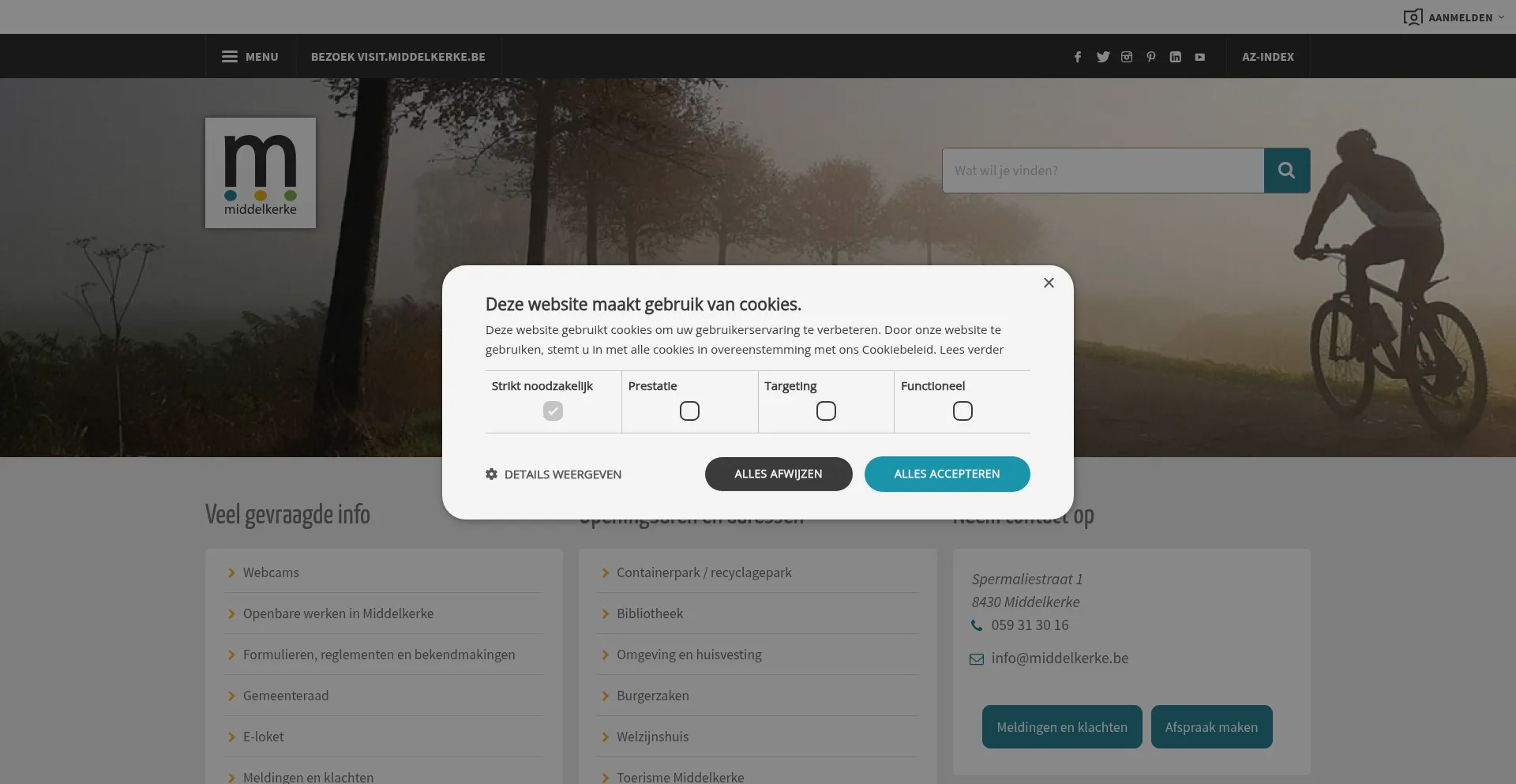 The website implements cookie consent mechanisms in compliance with privacy regulations such as GDPR or CCPA. This demonstrates that middelkerke.be adheres to data protection standards and provides users with control over personal data collection practices.