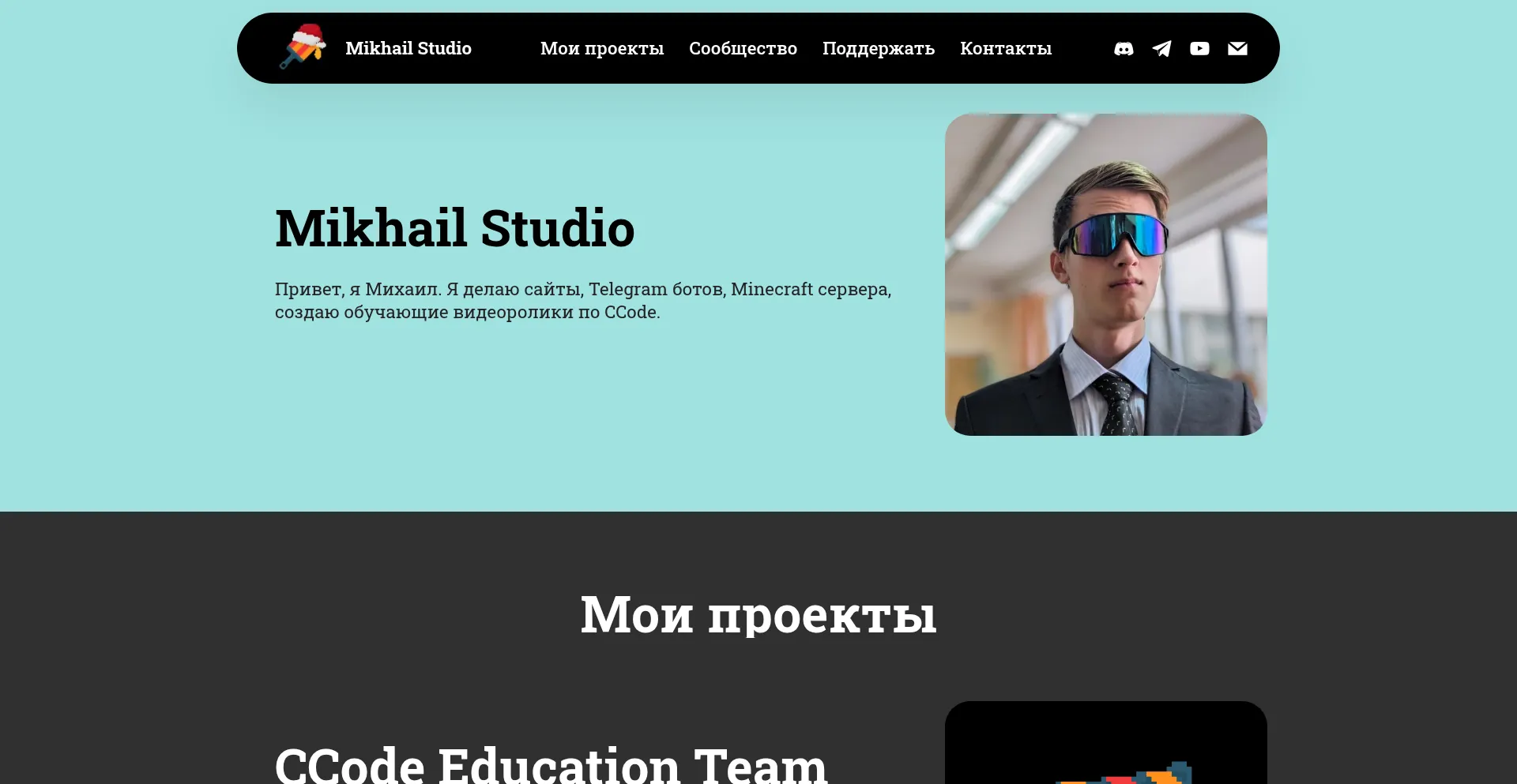 Сайт - портфолио Mikhail Studio. Tilda. Телеграм боты. Minecraft сервера
