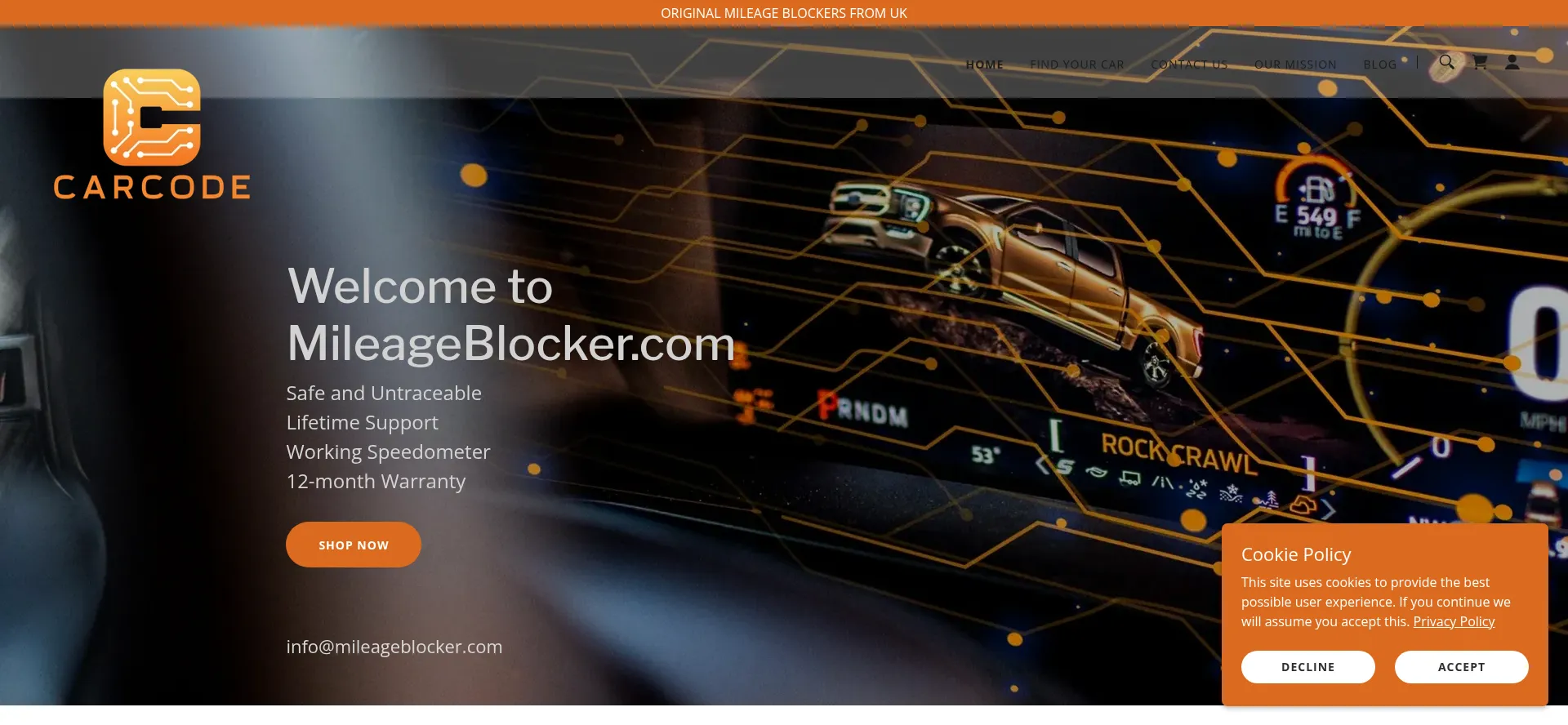 Analysis indicates that mileageblocker.com operates as an e-commerce platform facilitating online transactions for goods or services. The website implements shopping cart functionality, payment processing systems, and product catalog features typical of commercial retail operations.