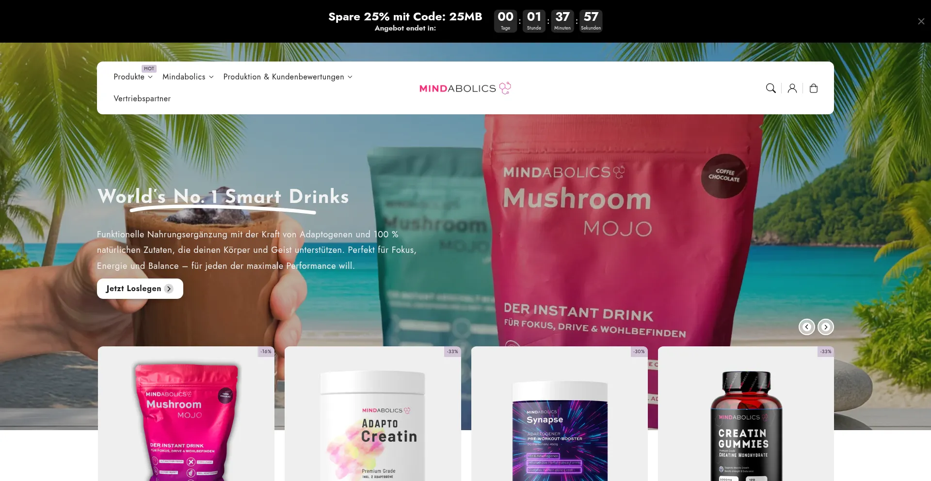 Our analyzer determines that website mindabolics.de is using Shopify CMS. Shopify is a popular e-commerce platform, powering around 4.4% of websites globally.